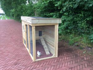 Hier afgebeeld: Hok voor eenden, afmetingen 1,00 x 1,00 x 1,55 mtr.