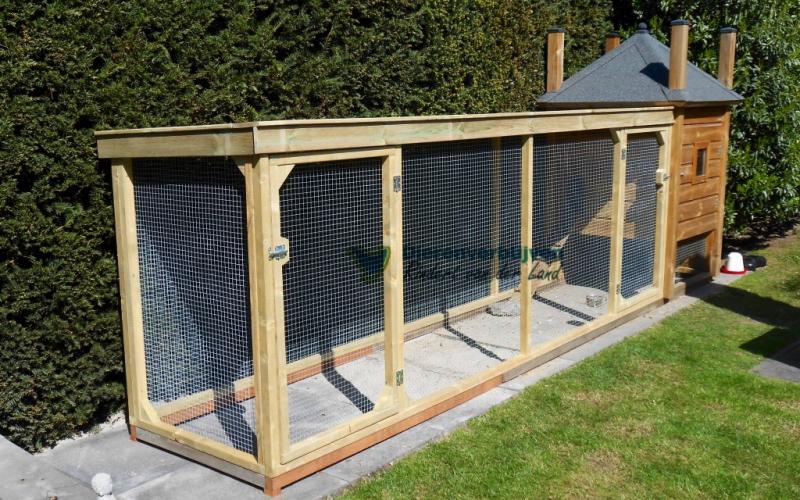 • Luikje in buitenren. (voor als de kippen overdag los in de tuin lopen of in een ren die tegen het verblijf is aan geplaatst).
