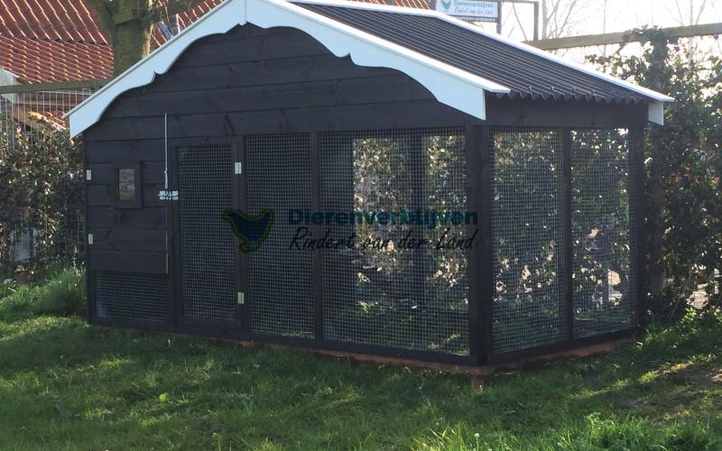 Het grote kippenhok is in verschillende afmetingen mogelijk.