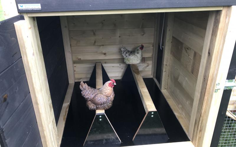 - Luikje om het nachthok af te sluiten voor eventueel ongedierte.
