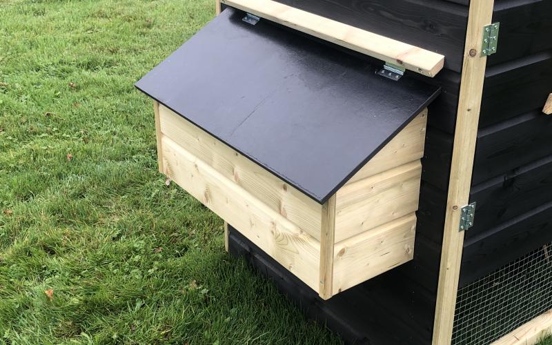 • Luikje om het nachthok af te sluiten voor eventueel ongedierte.