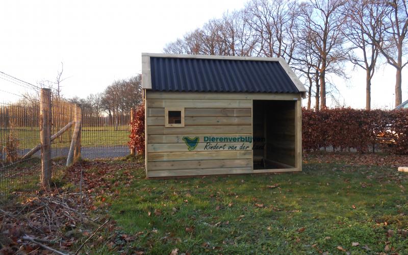Dit schuilhok is in alle afmetingen te verkrijgen.