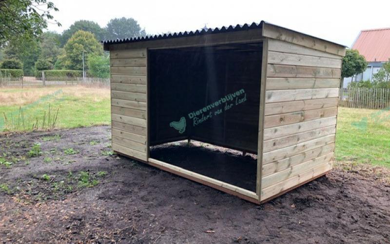 Hier afgebeeld: Schuilstal Hoog model, afmetingen circa 3,00 x 2,00 x 1,85 meter