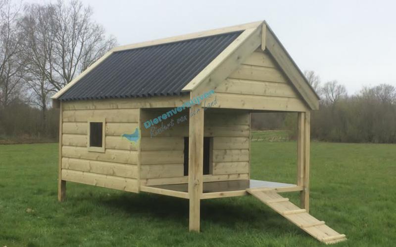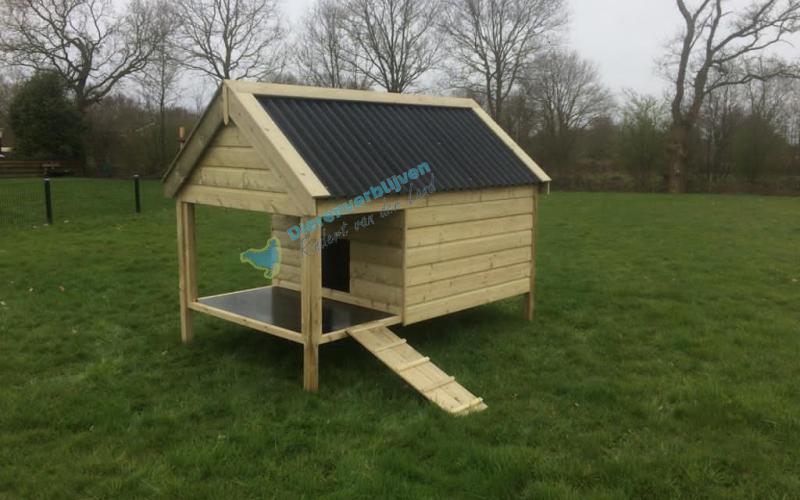 Het geitenverblijf op palen is van zeer degelijke en kwaliteit materiaal. Hoogwaardig afgewerkt!