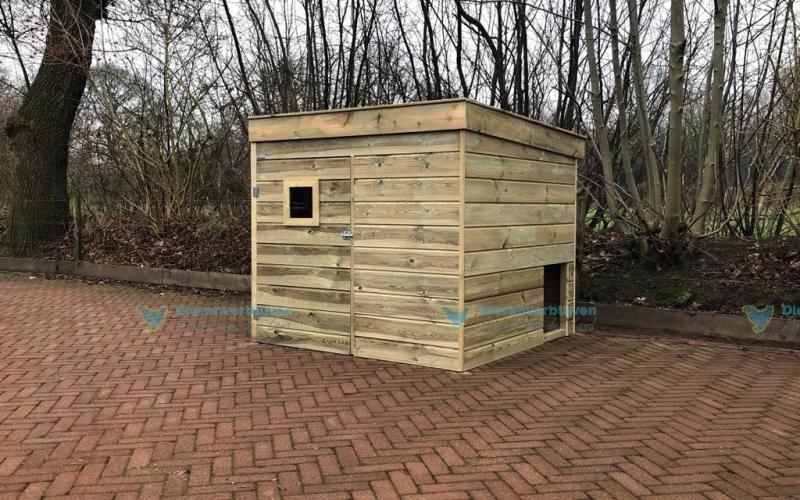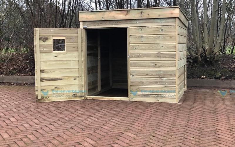 De weidestal met dak schuin aflopend naar achteren is van zeer degelijke en kwaliteit materiaal. Hoogwaardig afgewerkt!
