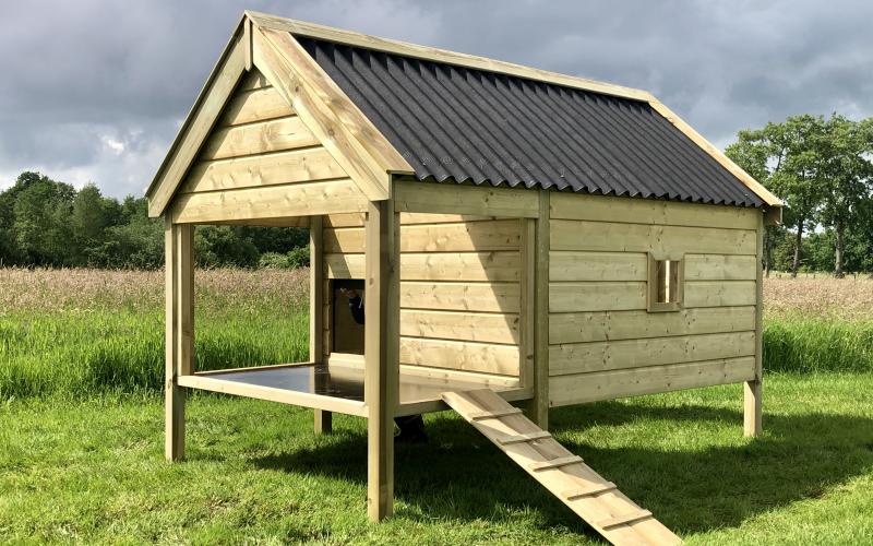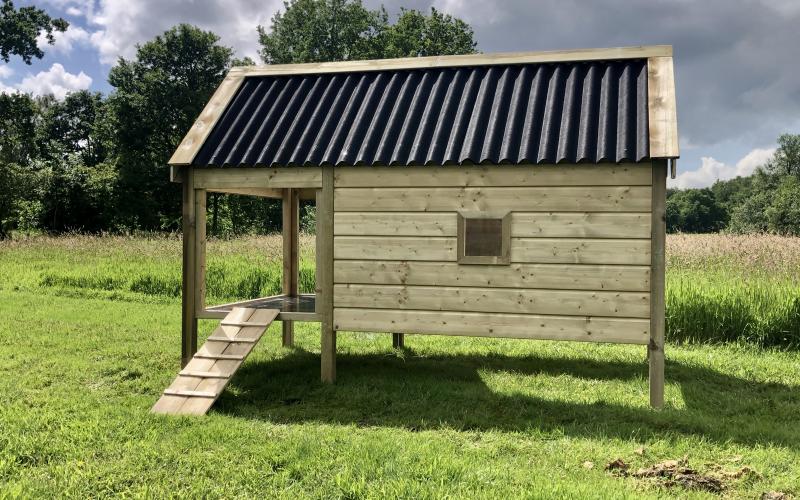 Hier afgebeeld: weidestal op poten, afmetingen circa 3,00 x 1,50 x 1,95 meter